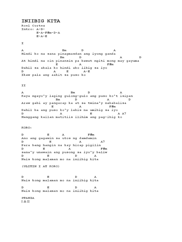 Slang I love you. INIIBIG KITA - Roel Cortez Kuerdas Reggae Version YouTube link. Create and get 5 IQ.